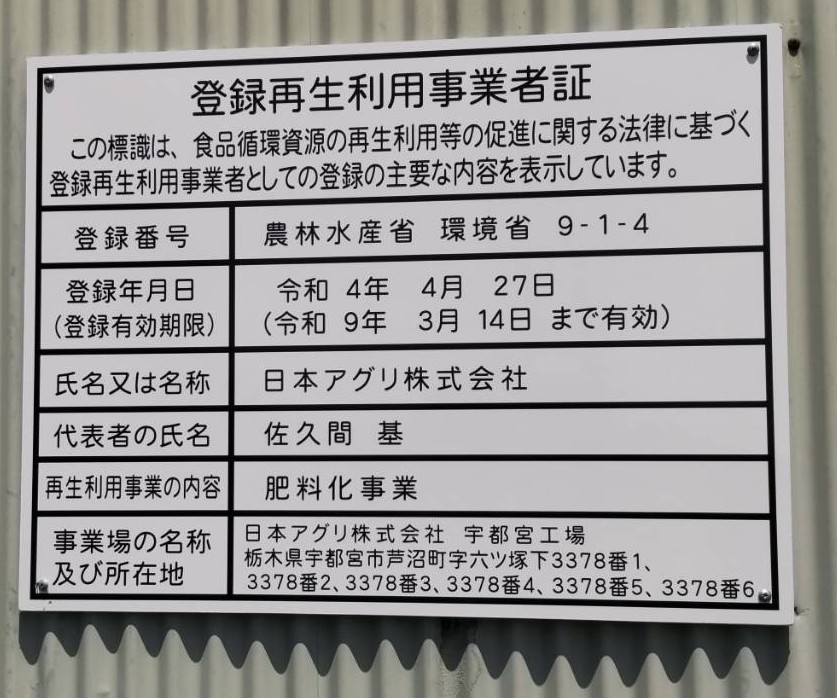 食品リサイクル法に基づく再生利用事業者の登録申請を行い、栃木県で第1号の
